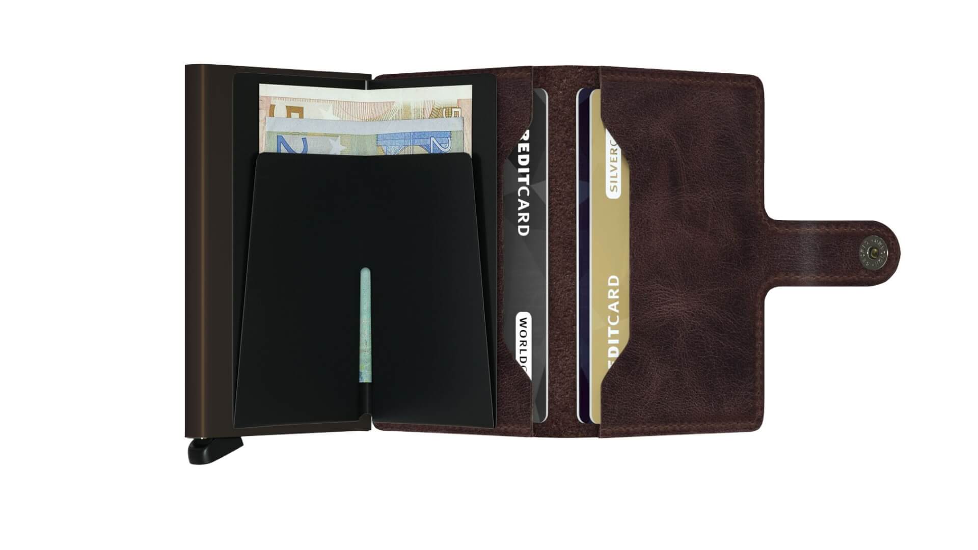 El miniwallet es la versión más icónica y polivalente. Sorprendentemente grande en su capacidad, viendo su pequeño y práctico tamaño, preparado para satisfacer tus necesidades. Su base es el Cardprotector, siendo este compacto y seguro. Protección RIFT en Cardprotector, evitando así lecturas no deseadas de las tarjetas. Buena protección contra dobladuras o evitando que nos puedan copiar y robar los datos de las tarjetas. Fabricado en aluminio macizo. Cartera fabricada con cuero europeo, con broche de cierre. Cardprotector con capacidad para 6 tarjetas planas, o 4 tarjetas con relieve. Las tarjetas se deslizan en cascada, con solo tocar un botón. Espacio para billetes. Espacio para 4 tarjetas adicionales DNI, carnet de conducir o cualquier tipo de tarjetas de visita. Sus dimensiones son cm de 6,5 ancho, 10,2 cm de altura y 2,1 cm de profundidad. Este miniwallet forma parte de la colección vintage. Este producto es unisex. Diseño ganador del premio Red Dot Design.